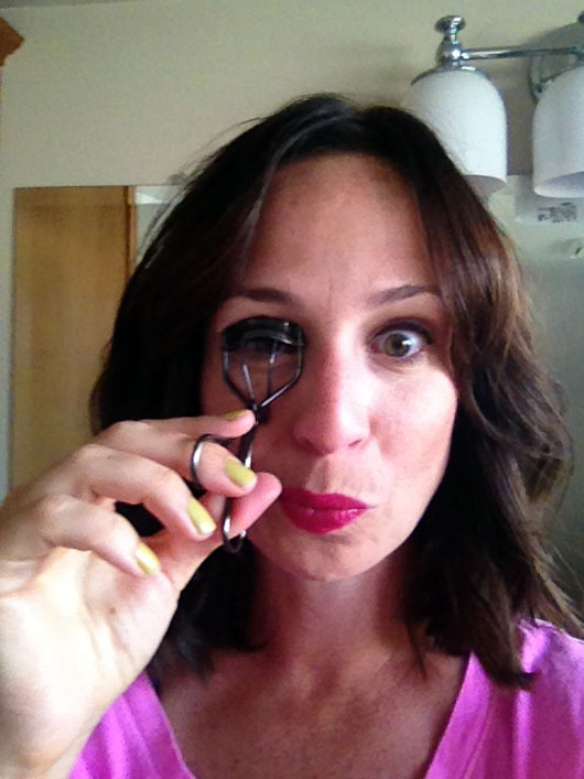 Well, at least you look cute! And I definitely endorse the eyelash curler. 10 seconds and SQUEEZE. A little eyeliner, mascara, tinted CC cream, sweep of blush and you’re good. Lipstick when you actually leave the house 😉